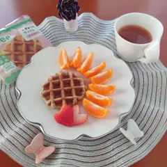 遅い朝ごはん 遅い朝ごはんなので、ワッフルとフルーツと生姜紅茶だけにしました😋 小腹満たしには、丁度良い量でした。これで腸活も出来るのは嬉しいです💓
