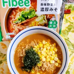 本日は夫とラーメンのシェア ネギがないからコーンと刻みのりをトッピング味噌味が美味しい😊