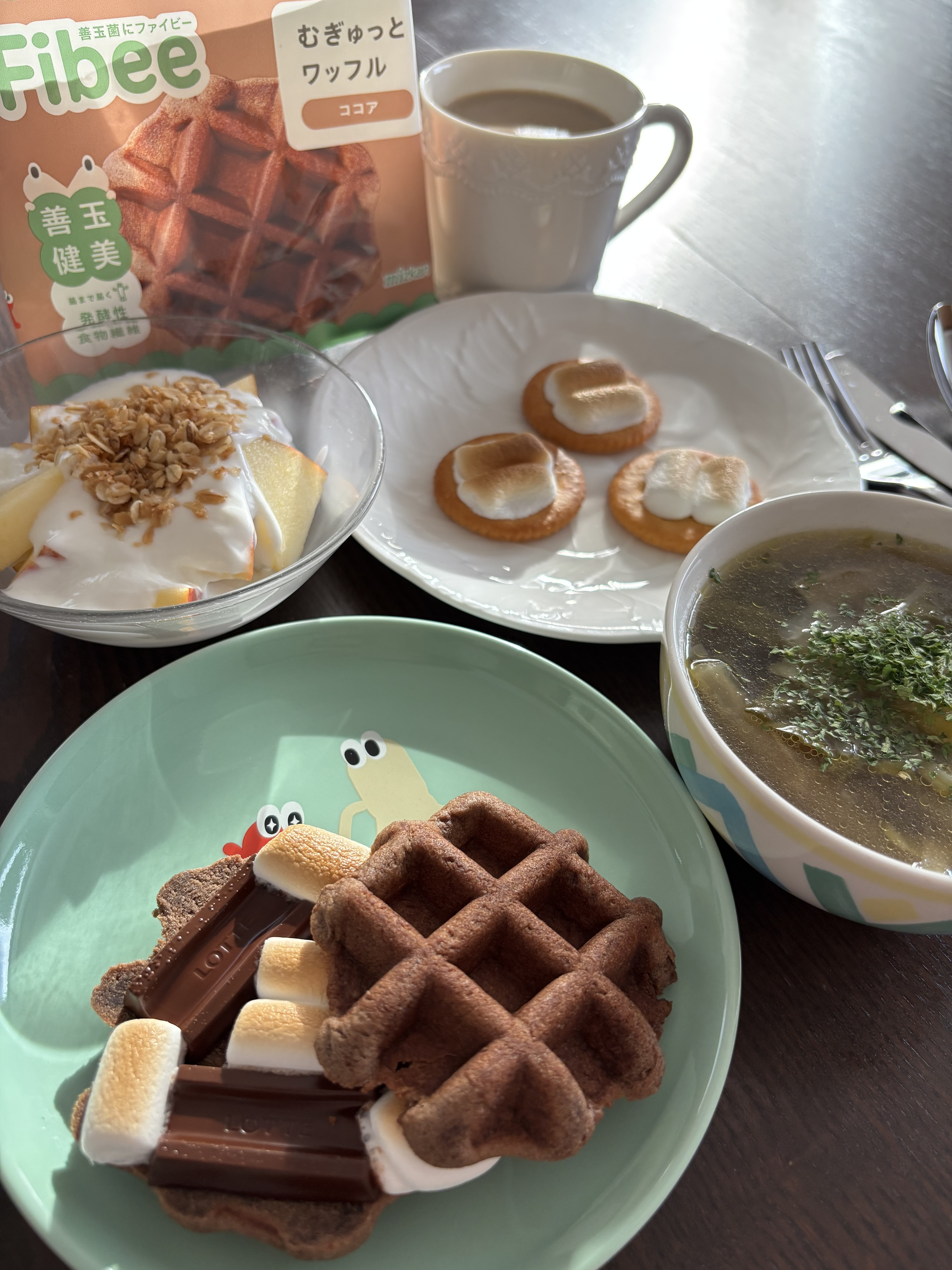 トップ > 📸みんなのおやつ・ごはんフォト > Fibeeワッフル ココア > 朝ごはん けいこ 2026/02/06 18:40 朝ごはん メープルがなくてココアで🤣おいしい😋カットが難しそうなのでかぶりつこうとしたらチョコが落ちてくるのでやっぱりナイフでカット…したらナイフにチョコがついてしまい💦なんだか手も口もお皿もカトラリーもしっちゃかめっちゃかになりました👀先日のライブ配信中のみなさんはめっちゃ上品にそつなく召し上がっていたんだなーっと感心しました!(わちゃわちゃしてるように見えたけど全然スマートだったんだわ) まあ、私が不器用なだけかもしれませんが…😅 Fibeeむぎゅっとワッフル ココア Fibee腸内会 Fibeeワッフル いいね 共有する 共有する X facebook LINE リンクをコピー Fibeeむぎゅっとワッフル ココア 【やさしい甘さで腹持ち◎】おうちやオフィスで手軽に食べられるココア味のワッフルです。 発酵性食物繊維量:4.3g(分析例) 詳細を見る コメントする 4 件の返信 (新着順) ミュートしたユーザーの投稿です。 投稿を表示 ミツカン佐藤 2026/02/16 18:07 けいこ おー!!アレンジありがとうございます!! スモア美味しいけど、ちょっぴり食べずらいですよね笑 私もライブの時は必死でした笑笑 いいね 返信する ミュートしたユーザーの投稿です。 投稿を表示 けいこ 2026/02/19 08:54 ミツカン佐藤 ドロドロにならずに召し上がっていたからすごいなぁと思いました😁 いいね 返信する ミュートしたユーザーの投稿です。 投稿を表示 みちこ 2026/02/09 04:33 ワッフルにマシュマロ、おいしそう! トーストしたらマシュマロがトロっと絡んでスモアみたいになりそうですね。 いいね 返信する ミュートしたユーザーの投稿です。 投稿を表示 けいこ 2026/02/09 08:26 みちこ ワッフルスモア、おいしいです! いいね 返信する ミュートしたユーザーの投稿です。 投稿を表示 水溶性食物繊維 2026/02/08 08:03 アレンジ美味しそうです✨ マシュマロは高さが出ちゃうんで綺麗に食べるのはちょっと難しそうですよね💦 いいね 返信する ミュートしたユーザーの投稿です。 投稿を表示 けいこ 2026/02/08 13:39 水溶性食物繊維 ライブ配信でみたものより小さいマシュマロにして高さを抑えたつもりですが…はさんだ感覚がクリームやあんことは違いますね😅 いいね 返信する ミュートしたユーザーの投稿です。 投稿を表示 花衣 2026/02/07 22:10 けいこ 美味しそうな朝ごはんですね😋 チョコとマシュマロのワッフル、チャレンジされたのですね〜😊 いいね 返信する ミュートしたユーザーの投稿です。 投稿を表示 けいこ 2026/02/08 00:52 花衣 真似しい、なんです🤣(できる範囲での) いいね 返信する