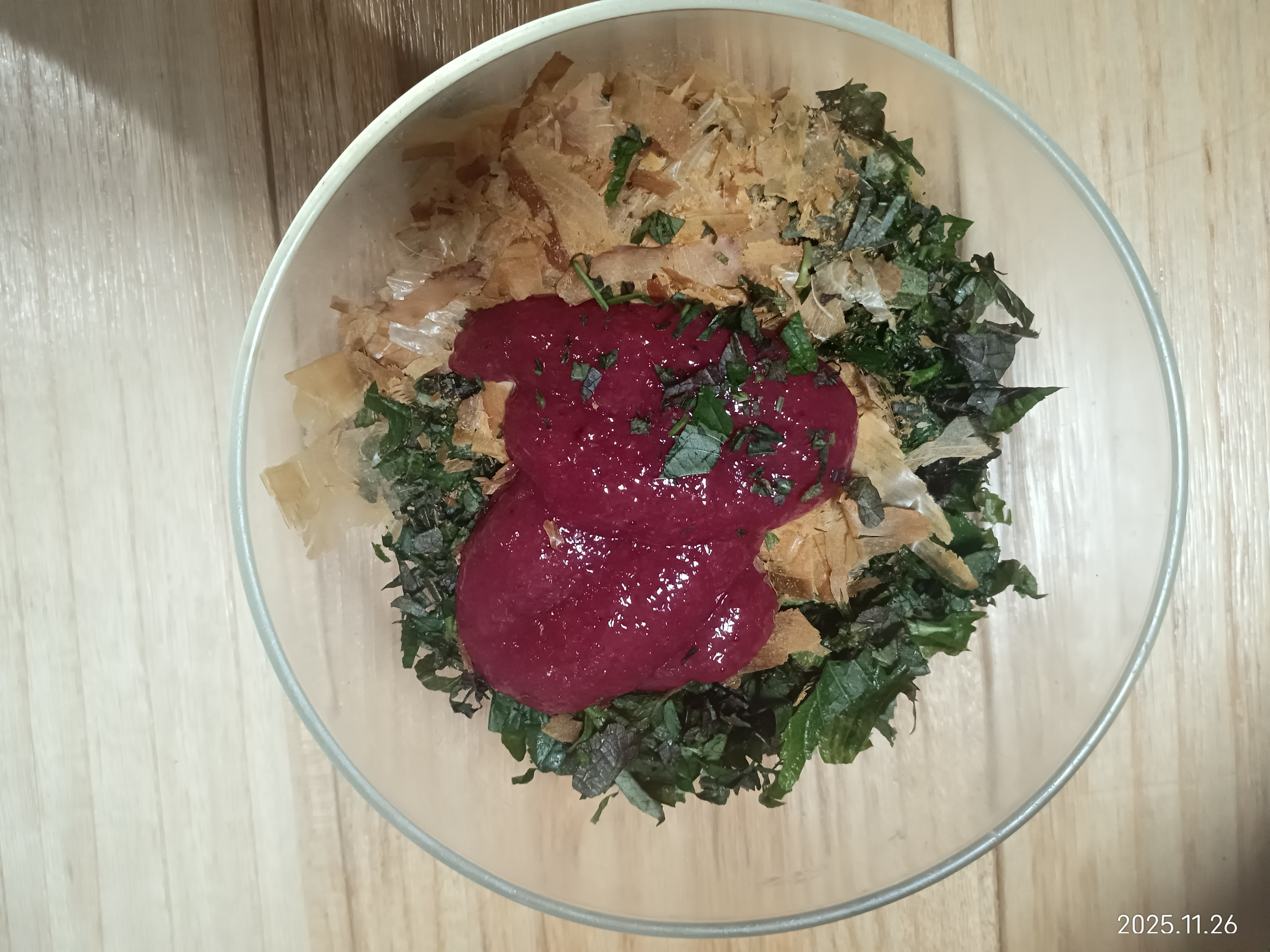 トップ > 📸みんなのおやつ・ごはんフォト > Fibee以外 > 紫蘇 シロツメクサ 2025/12/01 23:15 紫蘇 紫蘇が引く程取れたのでとりあえず 練り梅、かつお節、味噌、醤油、ポン酢、そして大量のシソをみじん切りにしてネリネリ、さらに追いシソでネリネリ。 美味しい!けどコレはソーメンに絶対合う!fibeeの納豆に入れてキャベツの柔らかい中の部分で包んで食べても美味しい!でもコレは夏の食べ方のような…… 焼きおにぎりも普通のおにぎりにも合います。うどんにもトッピングでまだシソ生活が当分続きます。因みにお風呂は冷え性に良いとのことで毎日入れています いいね 共有する 共有する X facebook LINE リンクをコピー コメントする 1 件の返信 (新着順) ミュートしたユーザーの投稿です。 投稿を表示 Fibee腸内会スタッフ白岩 2025/12/03 17:55 わぁぁ、酸っぱさとさっぱりさがたまらなく美味しそうですね😋 いろんなものにかけたくなりますね✨ いいね 返信する