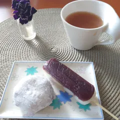 3時のおやつ💖 大好きな伊勢屋さんのあん団子と豆大福です😋主人が、買って来てくれました😅